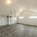 The three-bedroom, two-bath 2103 square-foot home is designed in an L-shape to accommodate the pie-shaped lot and an oversized five-car garage. The layout also makes the most efficient use of space while incorporating expansive 9′ ceilings with vaulted ceilings in the living space and primary bedroom. A slab-on-grade foundation virtually eliminates potential radon gas and water leakage issues that can incur with a home with a basement. It also eliminates sump pits and failed sump pump water backup issues.